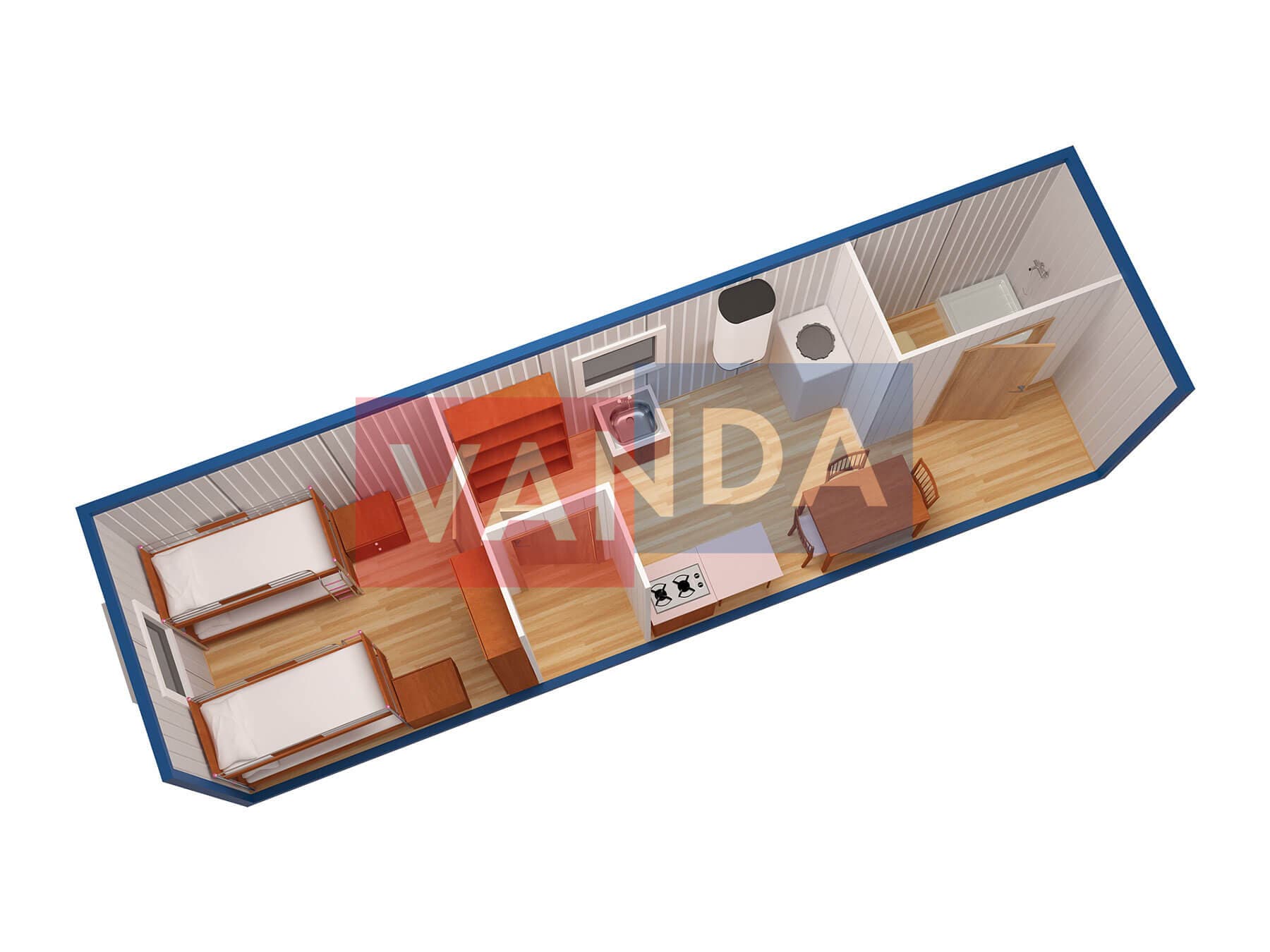 Металлическая бытовка с кухней в тамбуре 5,85 x 2,4 - Оргалит ДВП